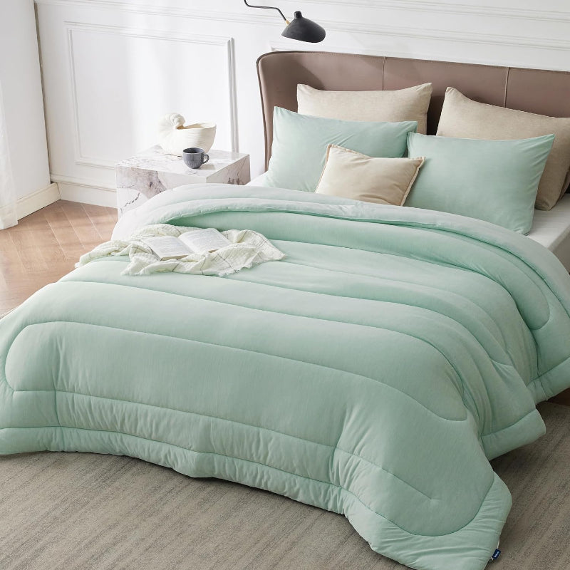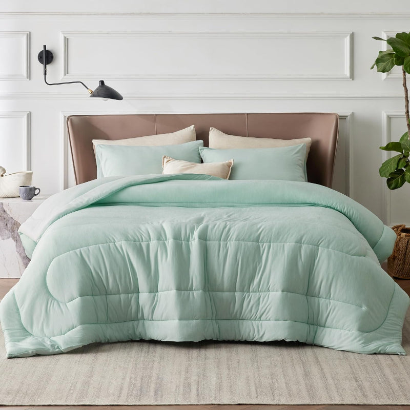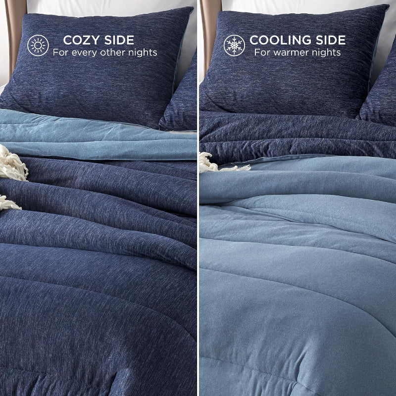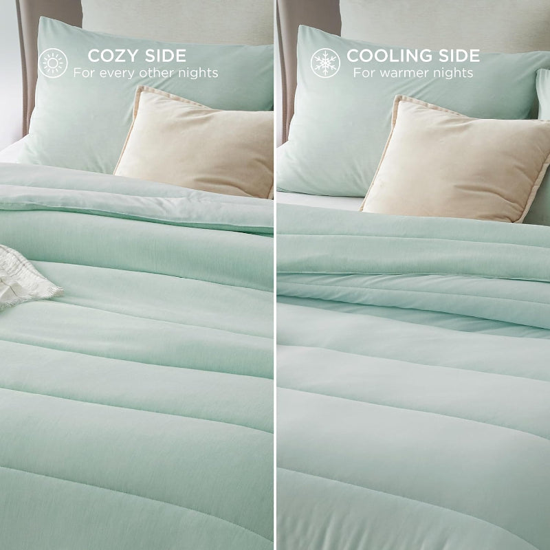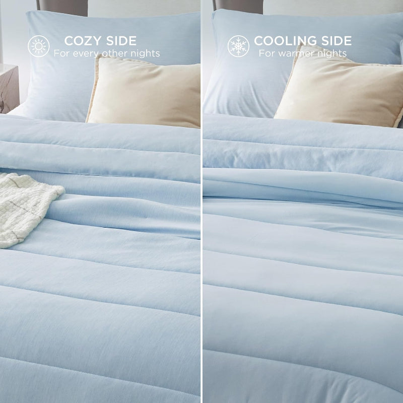- Reversible Warmth: This comforter set is designed to provide comfort and warmth throughout the year. With a reversible design, you can easily switch between a warm and cozy side for winter and a cool side for summer.