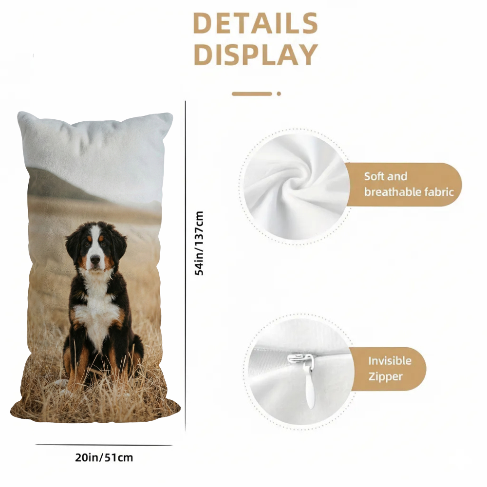 Personalized Machine Washable Pillowcase With Zipper is designed for customers who want to transform everyday bedding into something personal and meaningful. By allowing a custom image to be printed directly onto the surface, this product turns a standard long pillow cover into a visually distinctive home accessory. Whether placed on a bed, sofa, or lounge area, it serves both a decorative and practical purpose. The elongated shape makes it suitable for full-length pillows commonly used for resting, lounging, or supporting different sleeping positions.