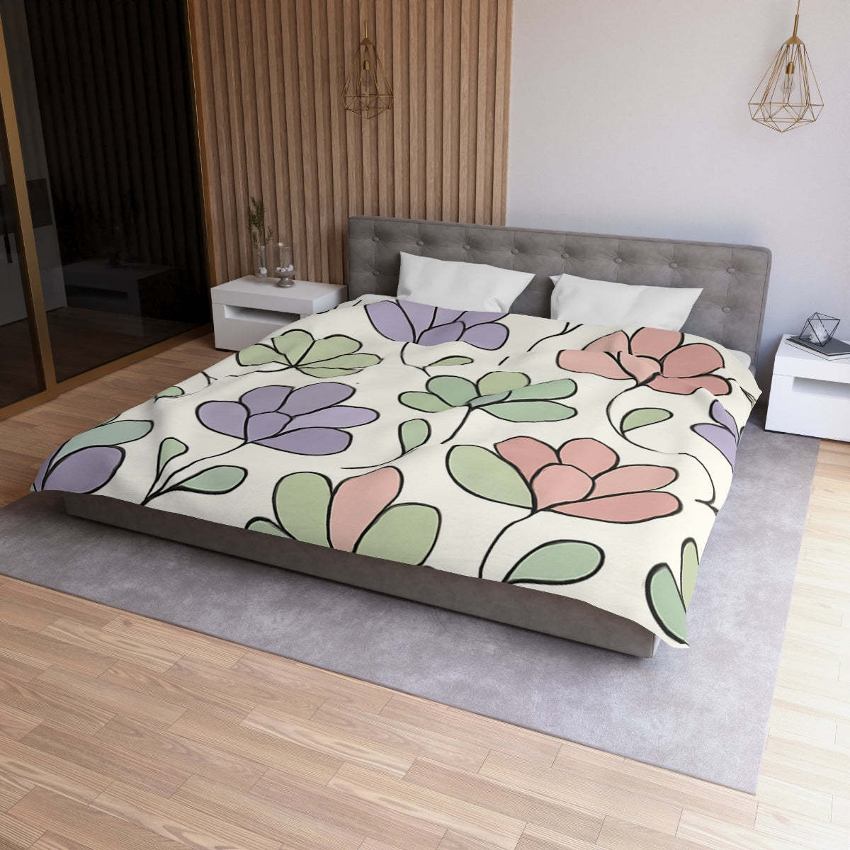 Elevate your bedroom decor with our exquisite Botanical Bliss duvet cover, designed to bring a touch of nature's charm into your sanctuary. Adorned with a stunning arrangement of abstract petal shapes, this luxury duvet features clusters that radiate harmony and balance, crafted from premium materials that exude softness and durability. Each petal showcases smooth, rounded contours, inviting you to explore the tranquil beauty of blooming formations—all without committing to a single flower type. Ideal for creating a peaceful and inviting ambiance, this comfortable bedding set transforms your space into a haven of relaxation. With its unique medallion motif connected by elegant vine-like tendrils, it artfully combines texture and style for your bedroom styling needs. Enjoy easy maintenance with machine washable fabric that retains its vivid colors and intricate design for years to come. Unwind in the lap of luxury and let the calming essence of our Botanical Bliss duvet cover inspire your home decor. Perfect as a thoughtful gift idea for loved ones who appreciate the beauty of nature and the joy of restful sleep.