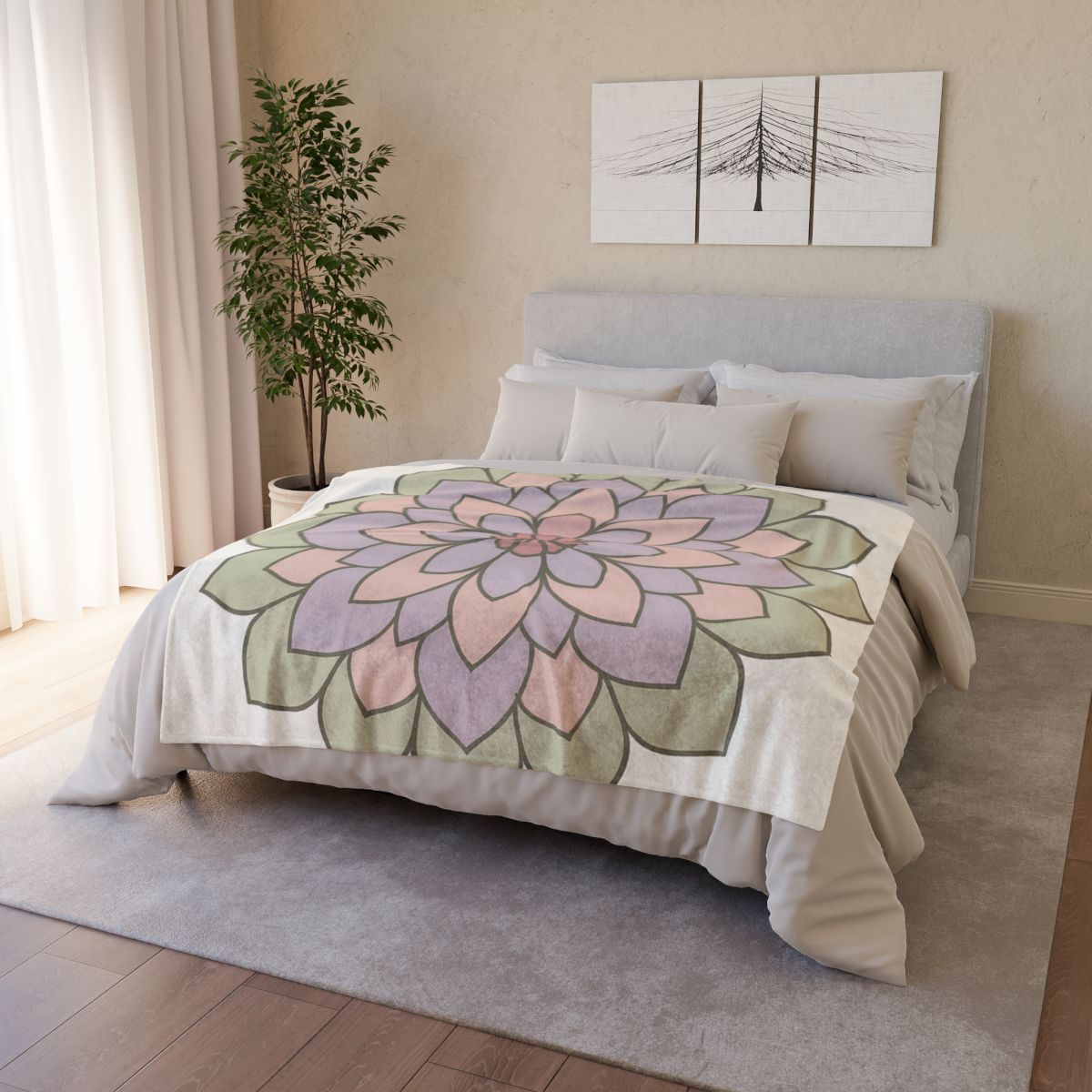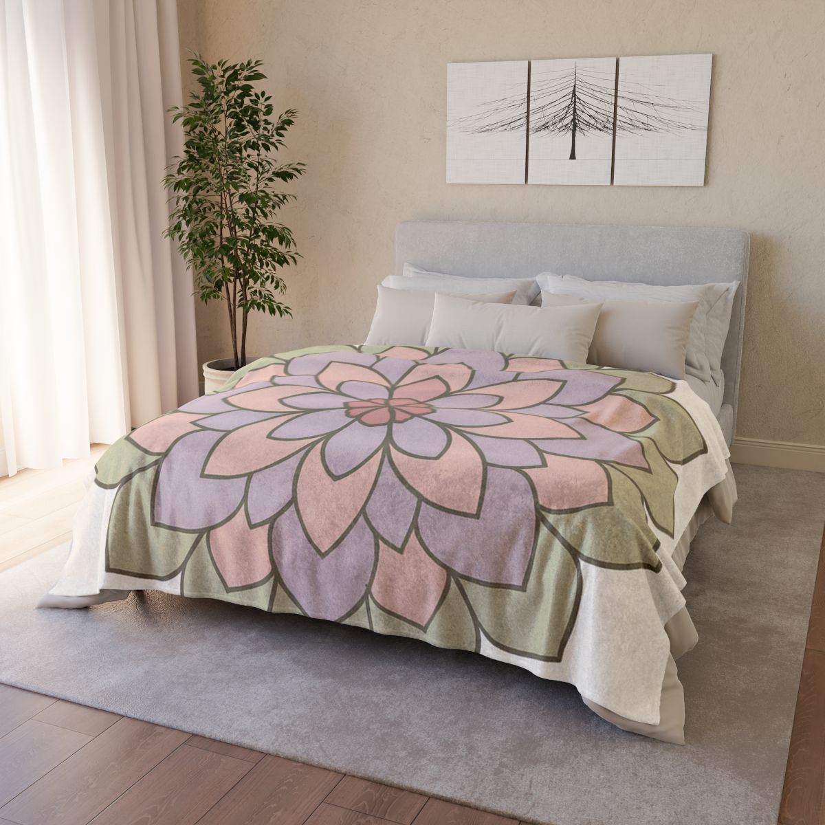 Transform your space into a serene oasis with our Petal Mandala Harmony cozy blanket. This exquisite throw blanket showcases a stunning flat-print design that radiates tranquility, featuring layers of overlapping floral-inspired petals in harmonious, soft hues. The elegant, rounded forms create a soothing circular pattern that captures the essence of nature's balance and beauty, making it a perfect addition to your home decor. Crafted with premium materials for an ultra-soft feel, this warm blanket not only provides exceptional comfort but also serves as a decorative statement piece in your living room or bedroom. Its durability and machine-washable fabric ensure that it maintains its fade-resistant colors and beauty, while adding a sophisticated botanical touch to your bedding. Ideal as a thoughtful gift idea for loved ones, the Petal Mandala Harmony blanket envelops you in warmth and serenity, inviting moments of relaxation and peace in your everyday life.