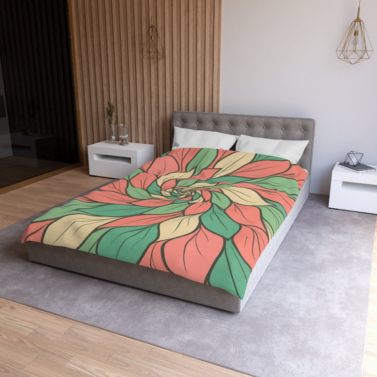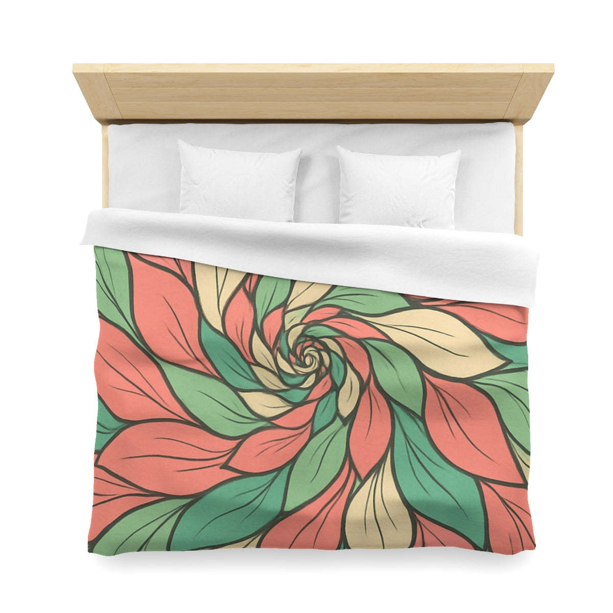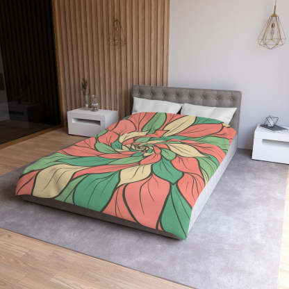 Transform your bedroom into an enchanting oasis with our stunning floral vortex duvet cover. This luxury duvet features a mesmerizing arrangement of swirling petals that gracefully dance across the fabric, inviting you into a realm of elegance and tranquility. Crafted from premium materials, each abstract petal boasts delicate linear detailing reminiscent of floral veining, enhancing both texture and visual appeal. The soft pastel palette of blush pink, mint green, and creamy beige creates a gentle, inviting atmosphere, perfect for restful sleep. With its thoughtfully layered design, this comfortable bedding set not only elevates your bedroom decor but also serves as a captivating centerpiece in your home. It's the ideal choice for stylish bedroom styling or a thoughtful gift idea for loved ones. Embrace the beauty of nature in your personal sanctuary while enjoying the unparalleled softness and durability of our premium duvet. Experience the luxury of restful nights surrounded by exquisite floral charm—you deserve it!