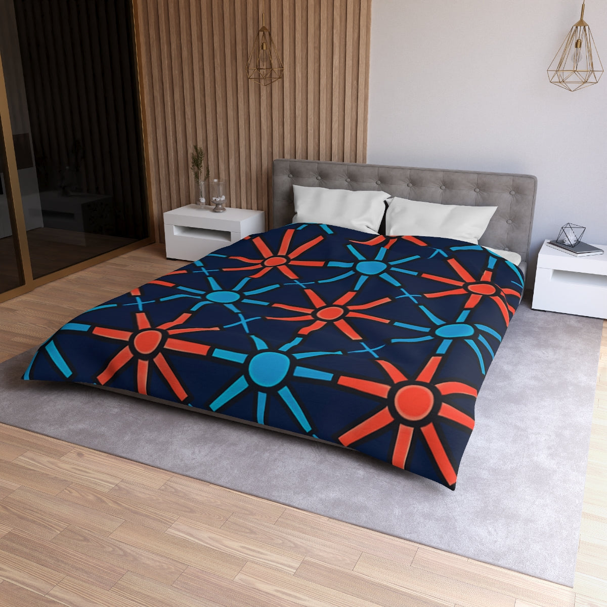 Transform your bedroom into a cosmic sanctuary with our stunning Starburst duvet cover, inspired by the mesmerizing beauty of the universe. This luxury duvet features an abstract design of radiant beams and geometric rays radiating from a central glowing core, expertly crafted to evoke the dynamic energy of hypothetical quantum star formations. Made from premium materials, this soft duvet offers unparalleled comfort, ensuring a restful night’s sleep while adding a touch of celestial elegance to your bedroom decor. With its fade-resistant colors and durable, machine-washable fabric, this bedding set not only captivates the eye but also withstands the test of time. Perfect for both cosmic enthusiasts and those seeking unique bedroom styling, this duvet cover is not just a piece of comfortable bedding—it's a bold visual celebration of the universe's energetic geometry. Elevate your space and embrace the cosmic brilliance with this exquisite piece, ideal for gifting or enhancing your personal oasis.