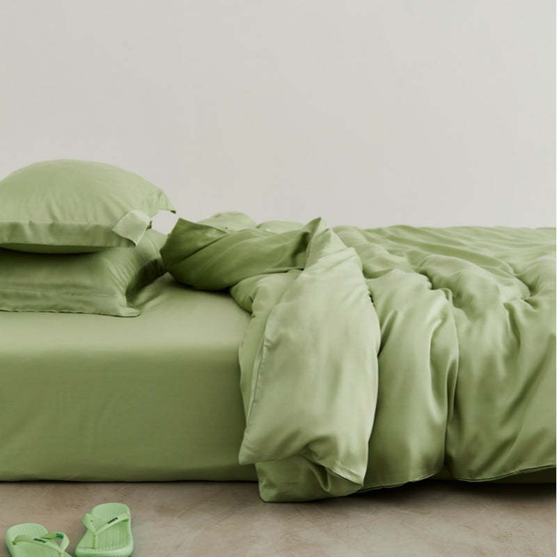 This Smooth Solid Color Bedding Quilt Cover 4 Pieces are constructed of high-quality Lyocell, which makes it long-lasting and cozy for use. You can stay comfortable thanks to this bedding quilt cover set's ability to wick moisture away from you while also keeping you cool. Sleeping on this luxurious Smooth Solid Color Bedding Quilt Cover 4 Pieces will be a wonderful experience. Therefore, do not delay in bringing them home and get yourself one today.