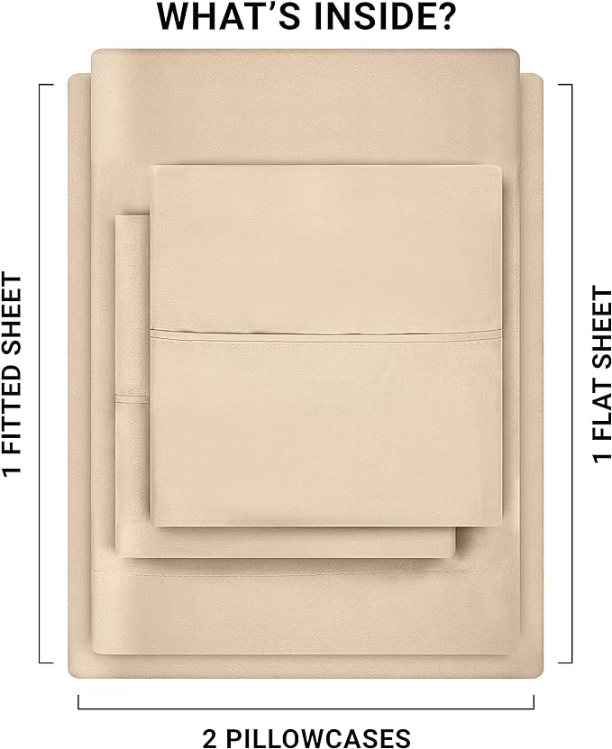 • Included components: 1 Flat Sheet, 1 Fitted Sheet & 2 Pillowcases