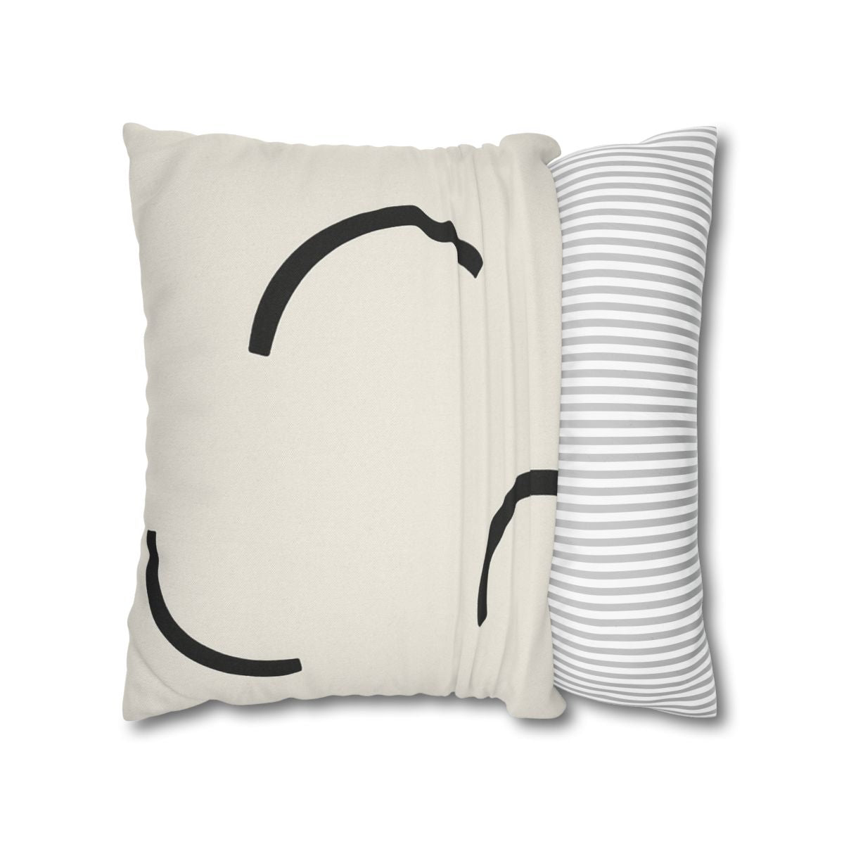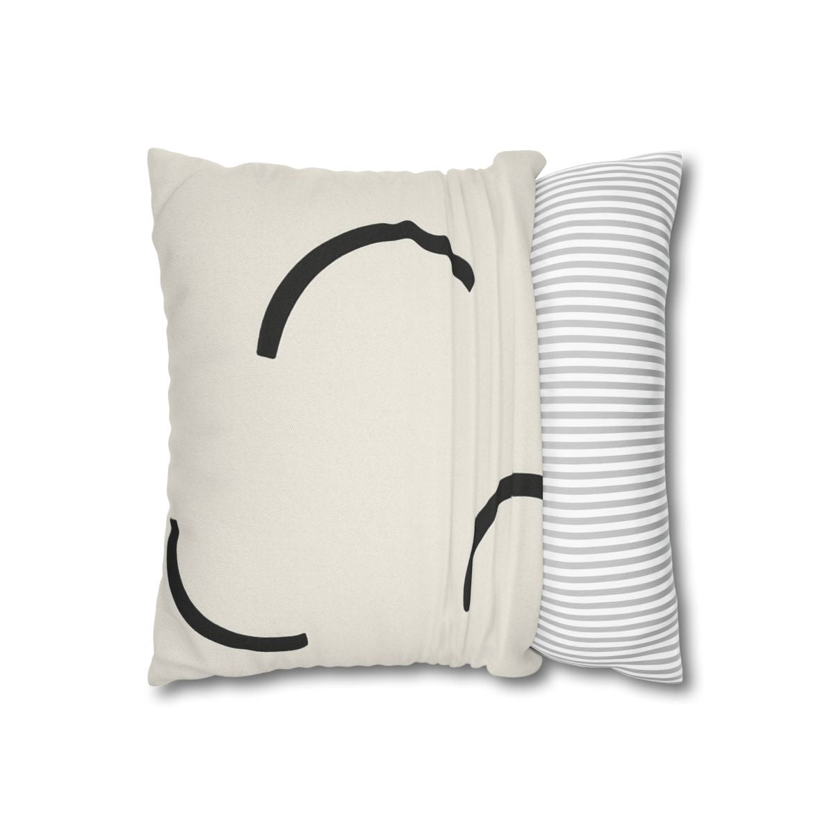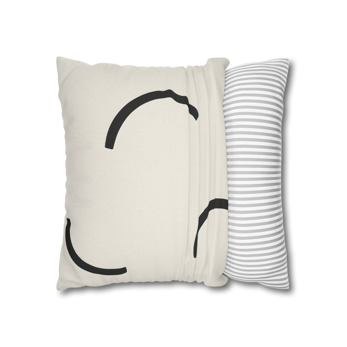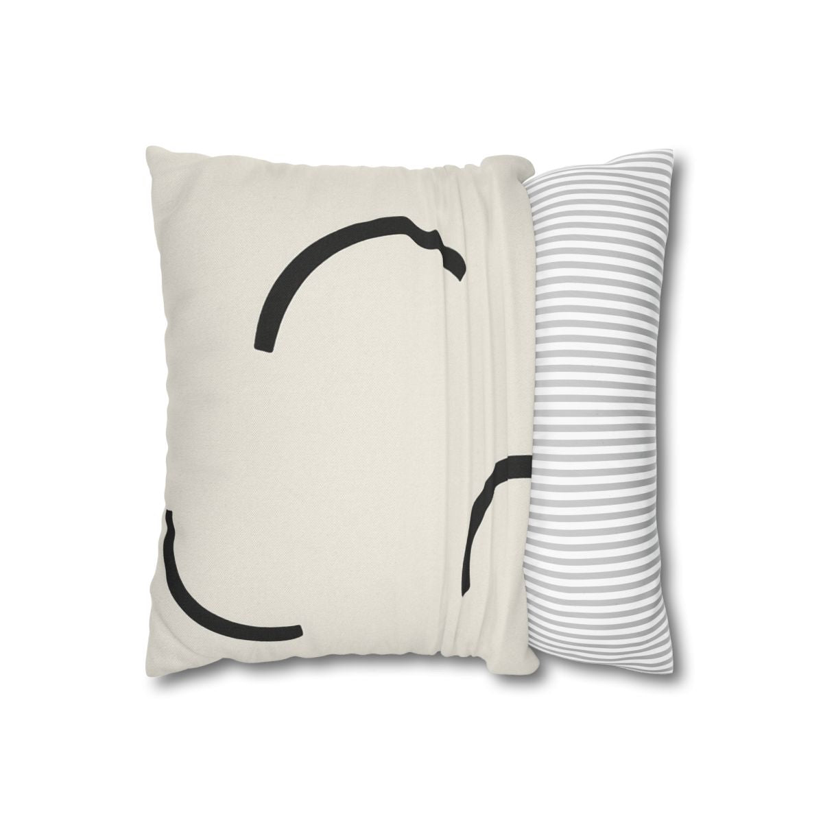 Elevate your bedroom decor with this stunning minimalist pillow case, featuring an artful composition of three distinct arcs elegantly arranged to achieve a sense of dynamic balance. Each arc varies slightly in size and orientation, showcasing a thoughtful design that invites relaxation and aesthetic appeal. Crafted from premium, soft materials, this decorative pillowcase promotes comfortable sleep while enhancing your bedding accessories. The deliberate negative space between the arcs creates an airy feel, allowing your bedroom to breathe, while the striking dark tones against a soft background ensure clarity and sharpness in every detail. Machine washable and fade-resistant, this stylish pillow cover not only offers exceptional durability but also represents a refined approach to modern design. Perfect as a gift idea for minimalist enthusiasts or anyone looking to infuse their space with sophistication, this pillow case transforms your sanctuary into a haven of tranquility and innovation.