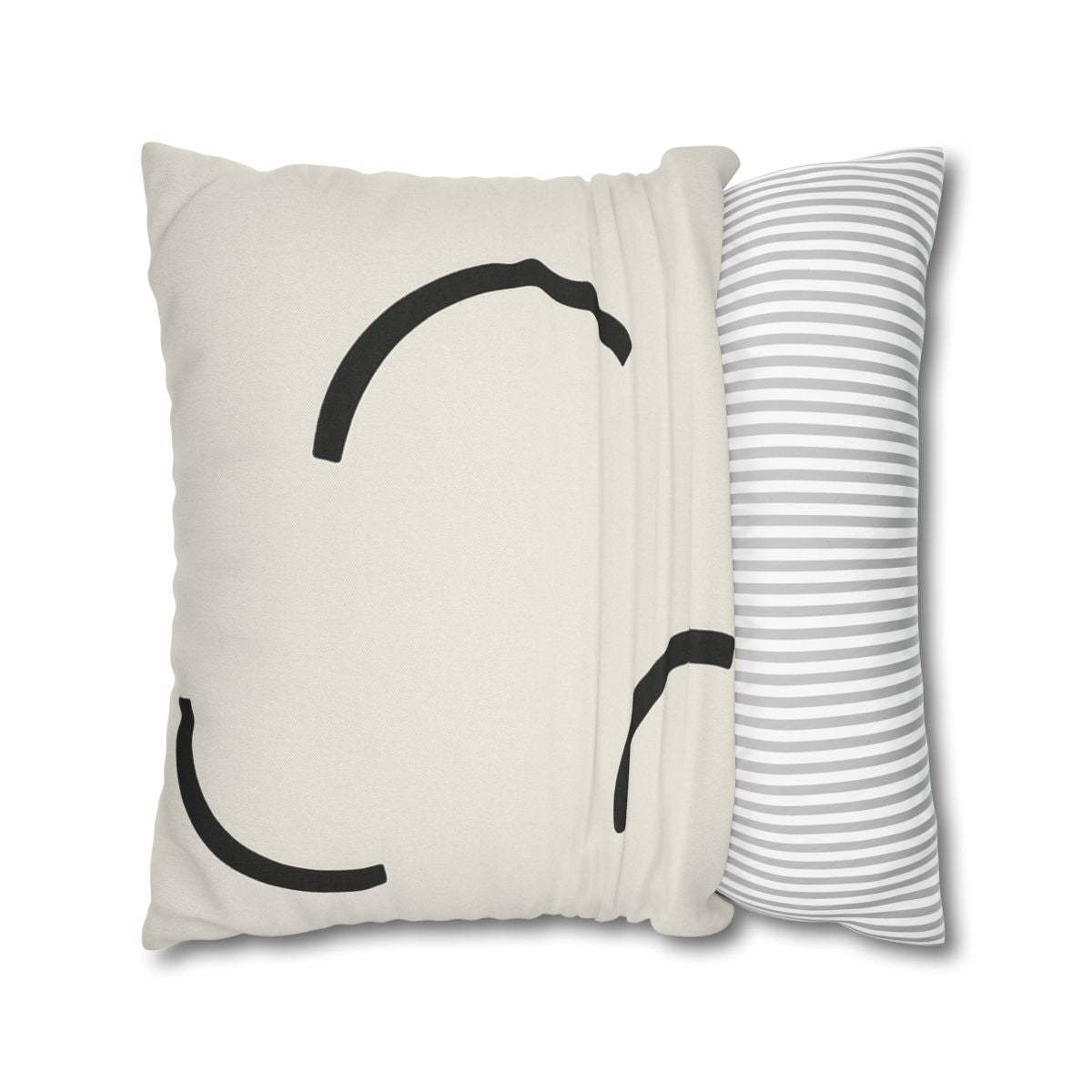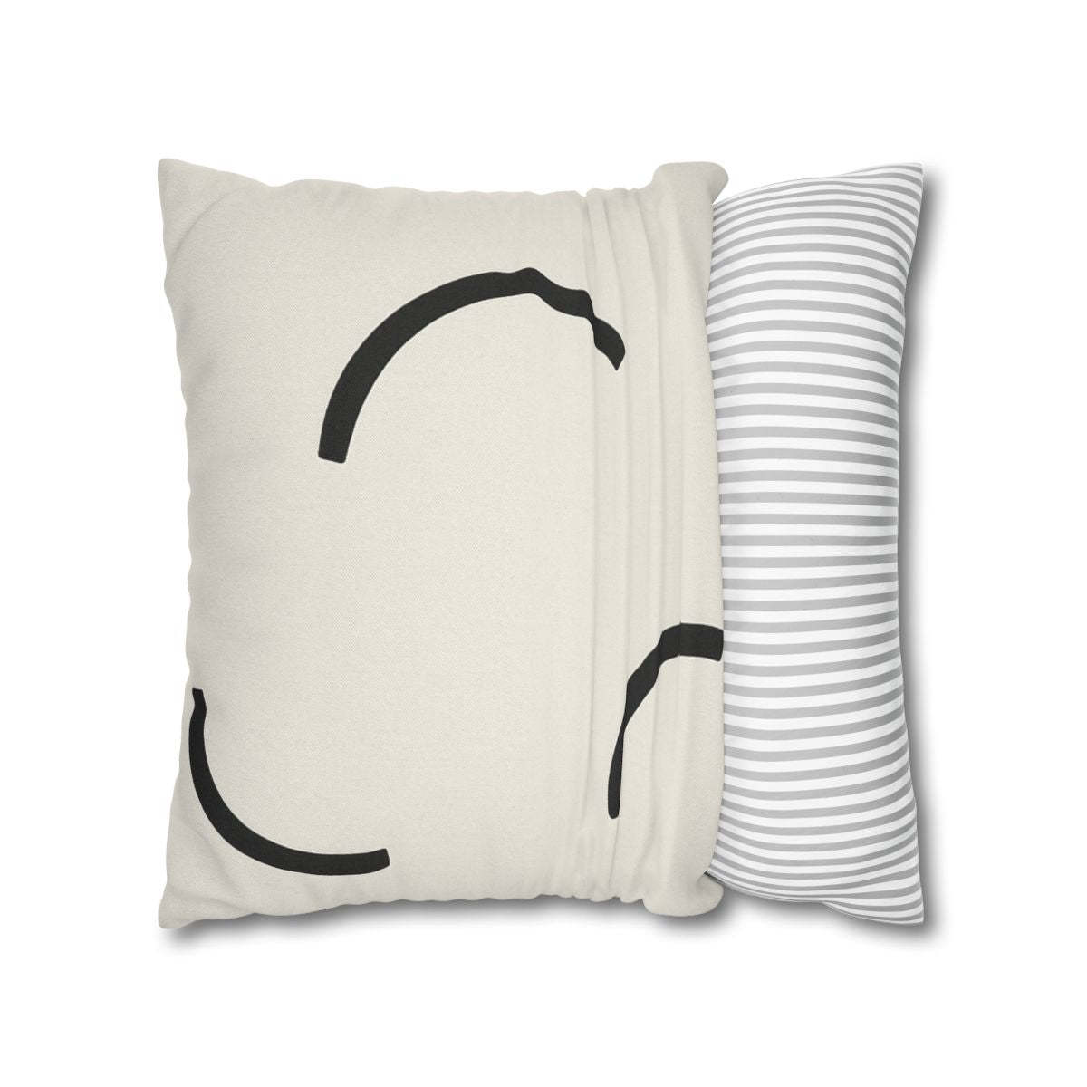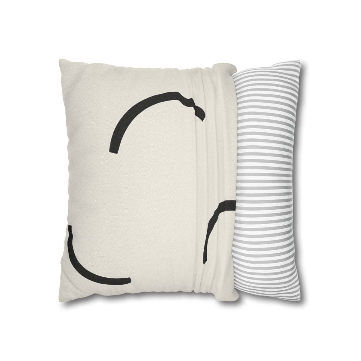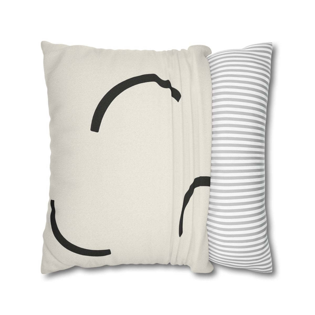 Elevate your bedroom decor with this stunning minimalist pillow case, featuring an artful composition of three distinct arcs elegantly arranged to achieve a sense of dynamic balance. Each arc varies slightly in size and orientation, showcasing a thoughtful design that invites relaxation and aesthetic appeal. Crafted from premium, soft materials, this decorative pillowcase promotes comfortable sleep while enhancing your bedding accessories. The deliberate negative space between the arcs creates an airy feel, allowing your bedroom to breathe, while the striking dark tones against a soft background ensure clarity and sharpness in every detail. Machine washable and fade-resistant, this stylish pillow cover not only offers exceptional durability but also represents a refined approach to modern design. Perfect as a gift idea for minimalist enthusiasts or anyone looking to infuse their space with sophistication, this pillow case transforms your sanctuary into a haven of tranquility and innovation.